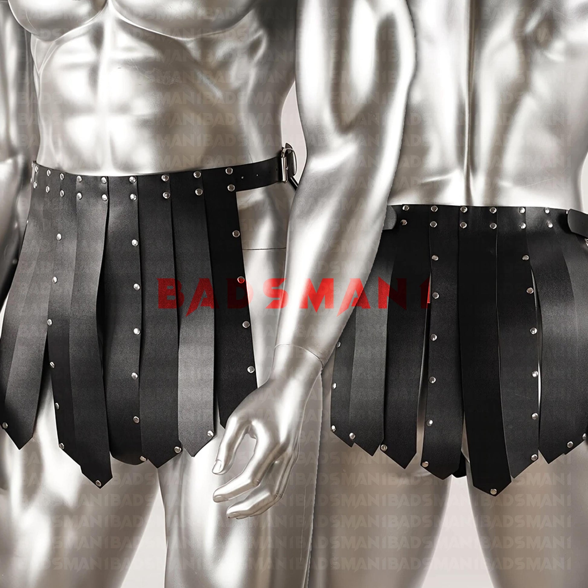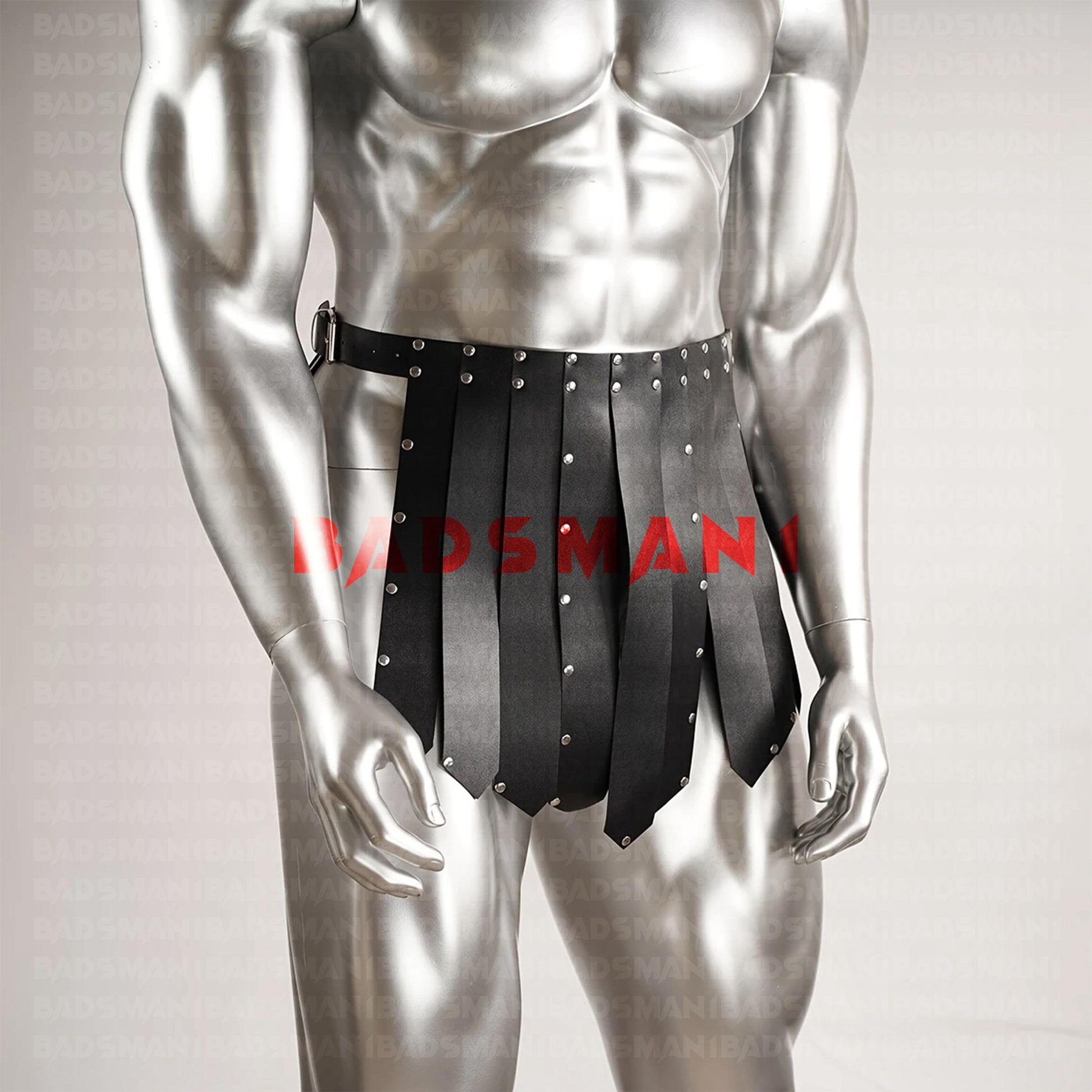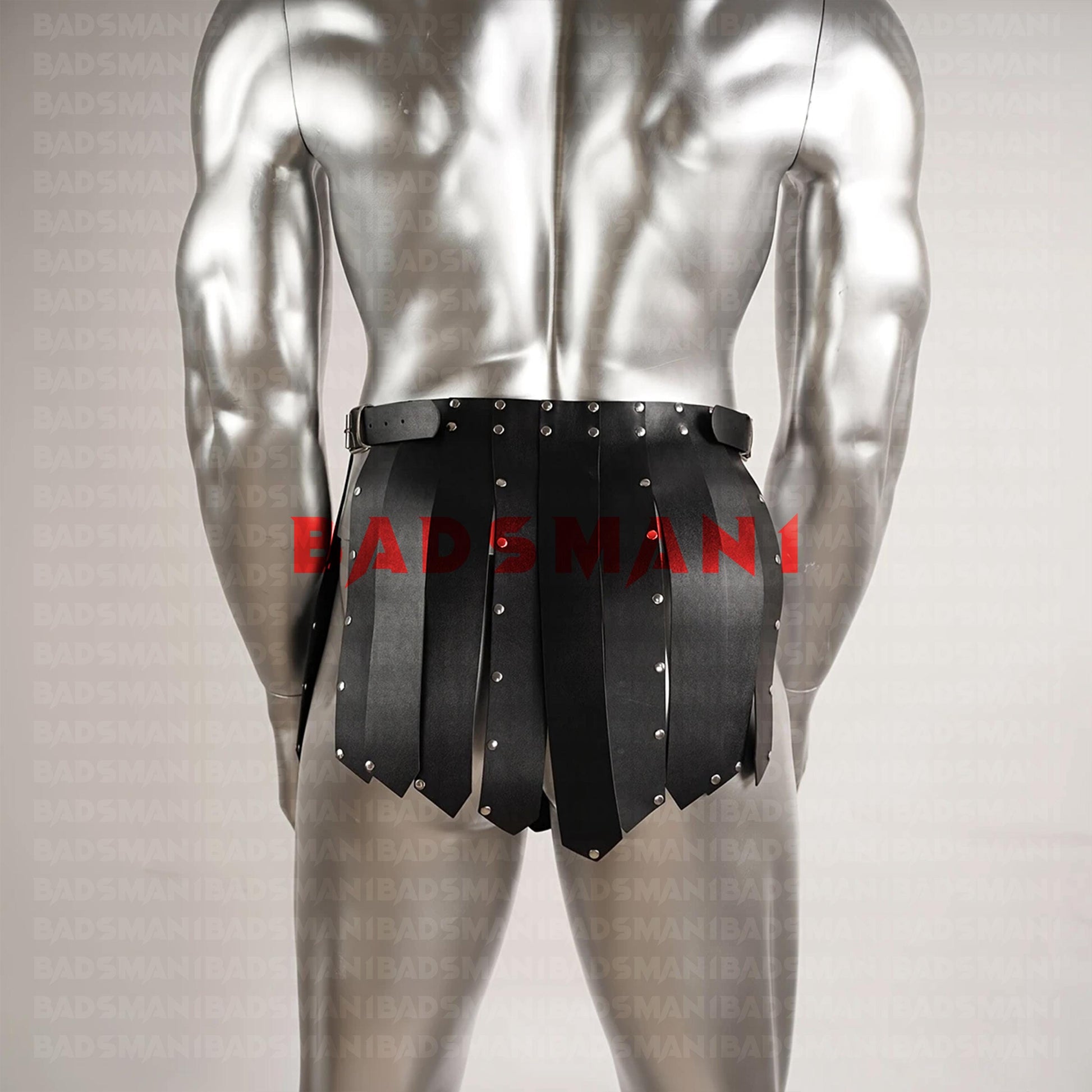 Bold Leather Gladiator Skirt, Mens Festival Kilt with Rivet Harness, Fashionable Warrior Wear, Skirt Man Harness, Male Stripper Attire